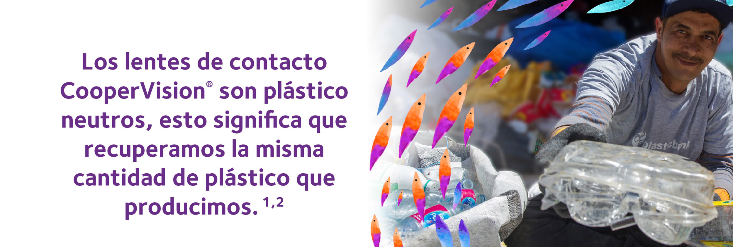 2. La neutralidad plástica se establece mediante la Adquisición de créditos de Plastic Bank. Un crédito representa la recolección y conversión de un kilogramo de plástico que puede llegar al océano. CooperVision Adquiere créditos equivalentes al peso del plástico en nuestros pedidos de lentes de contacto Biofinity, Avaira Vitality, clariti 1 day, MiSight 1 day & MyDay en un período de tiempo específico. El plástico para lentes de contacto se determina por el peso del plástico en el blíster, el lente y el paquete secundario (caja exterior), incluidos los laminados, adhesivos e insumos auxiliares (por ejemplo, tinta).